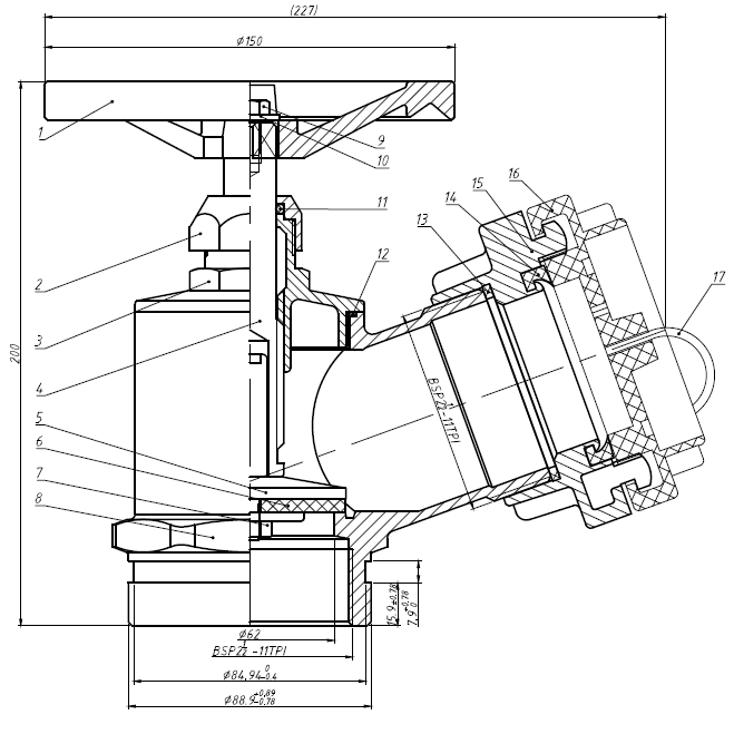 Langan tyyppi: Kulma 65 mm BSP taottu Storz-sovitin UV-muovikorkilla